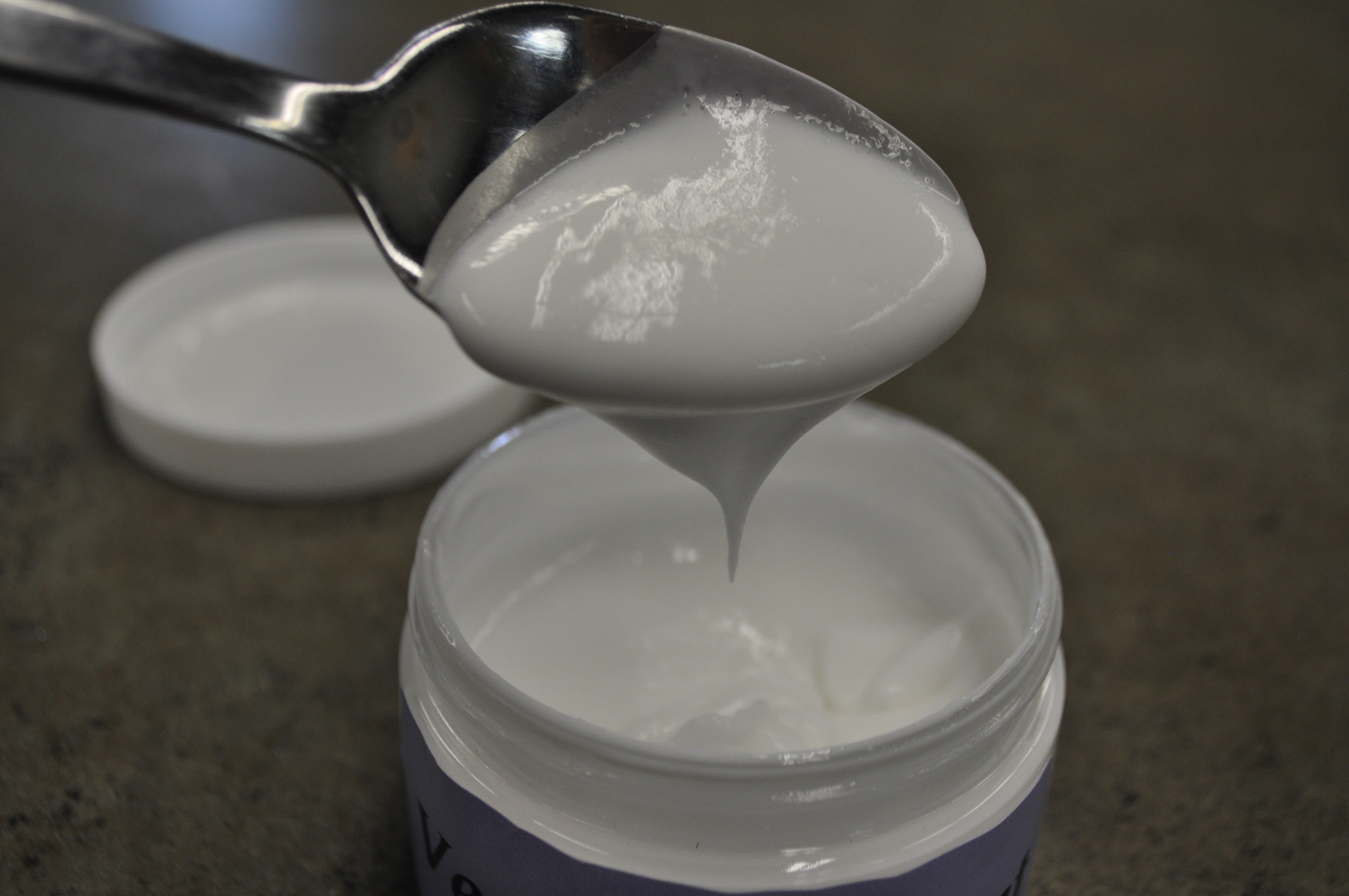 Our second batch of lotion was made with 3% Veggie Emulsifier. This lotion did completely emulsify, but it was very thin.