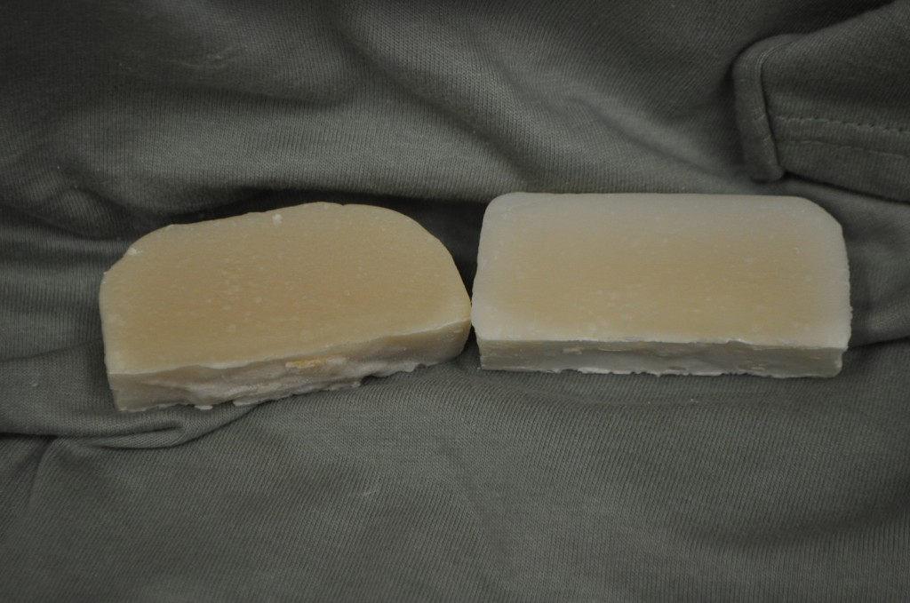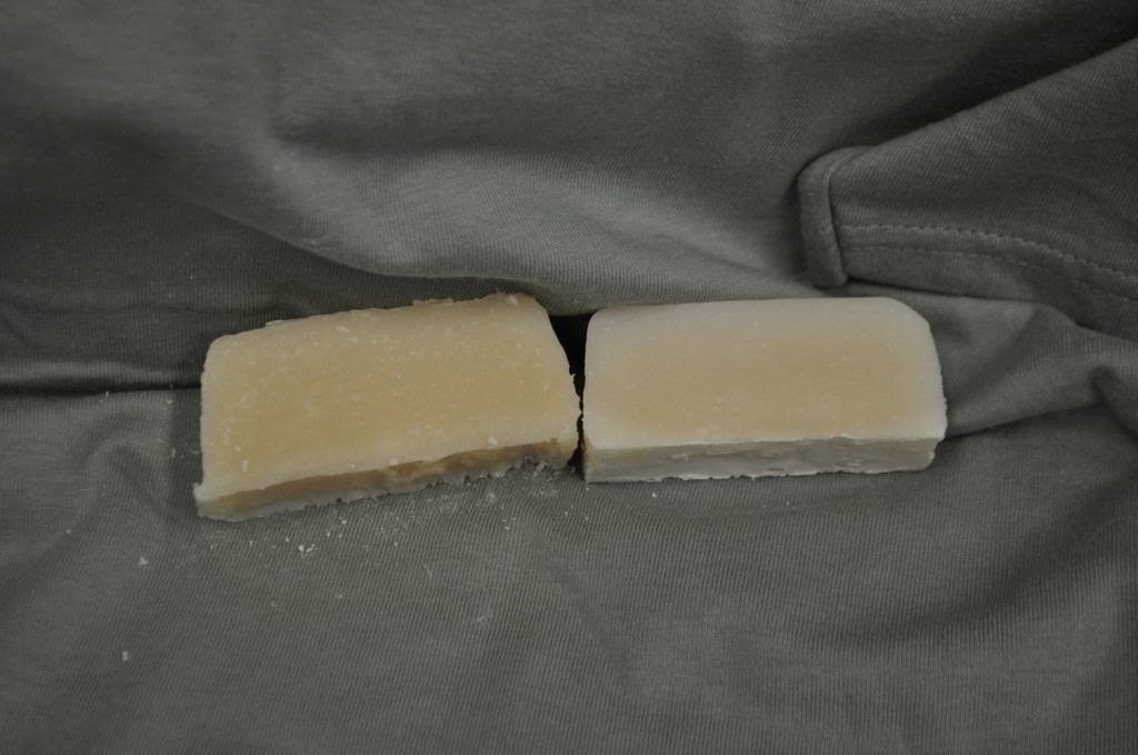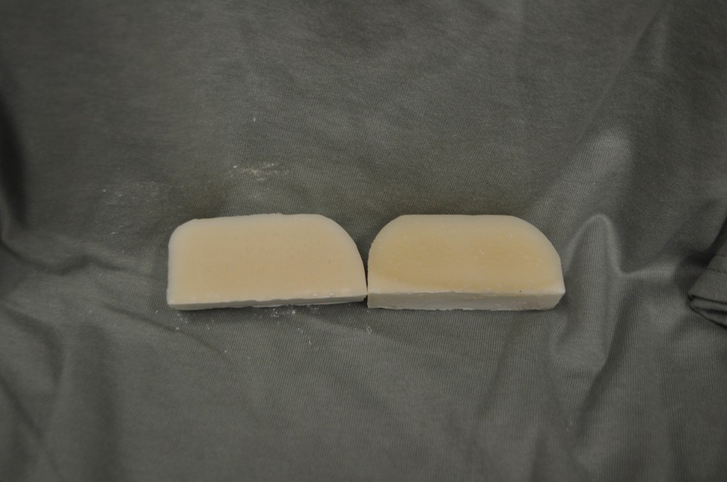 Patchouly scented soap on the left and control on the right.