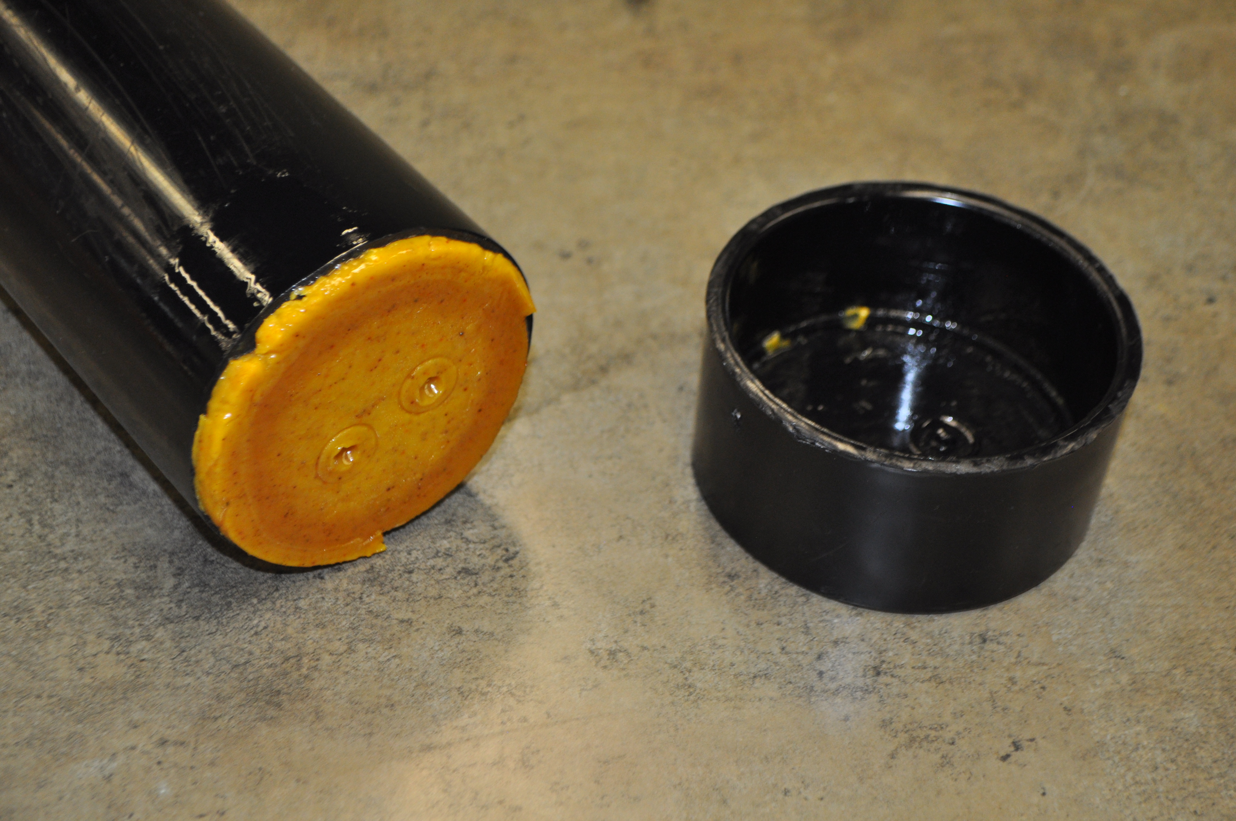 We chose to use Annatto Seed Powder, Gingerbread & Spice Fragrance Oil and a simple homemade round PVC mold. If you want to learn more on how to make a mold like this for yourself, check out this post. They are simple to make and a lot of fun! (Hint: my mold can hold a 4 lbs batch of soap. For removal sake, it really should hold no more than 3 lbs of soap.)