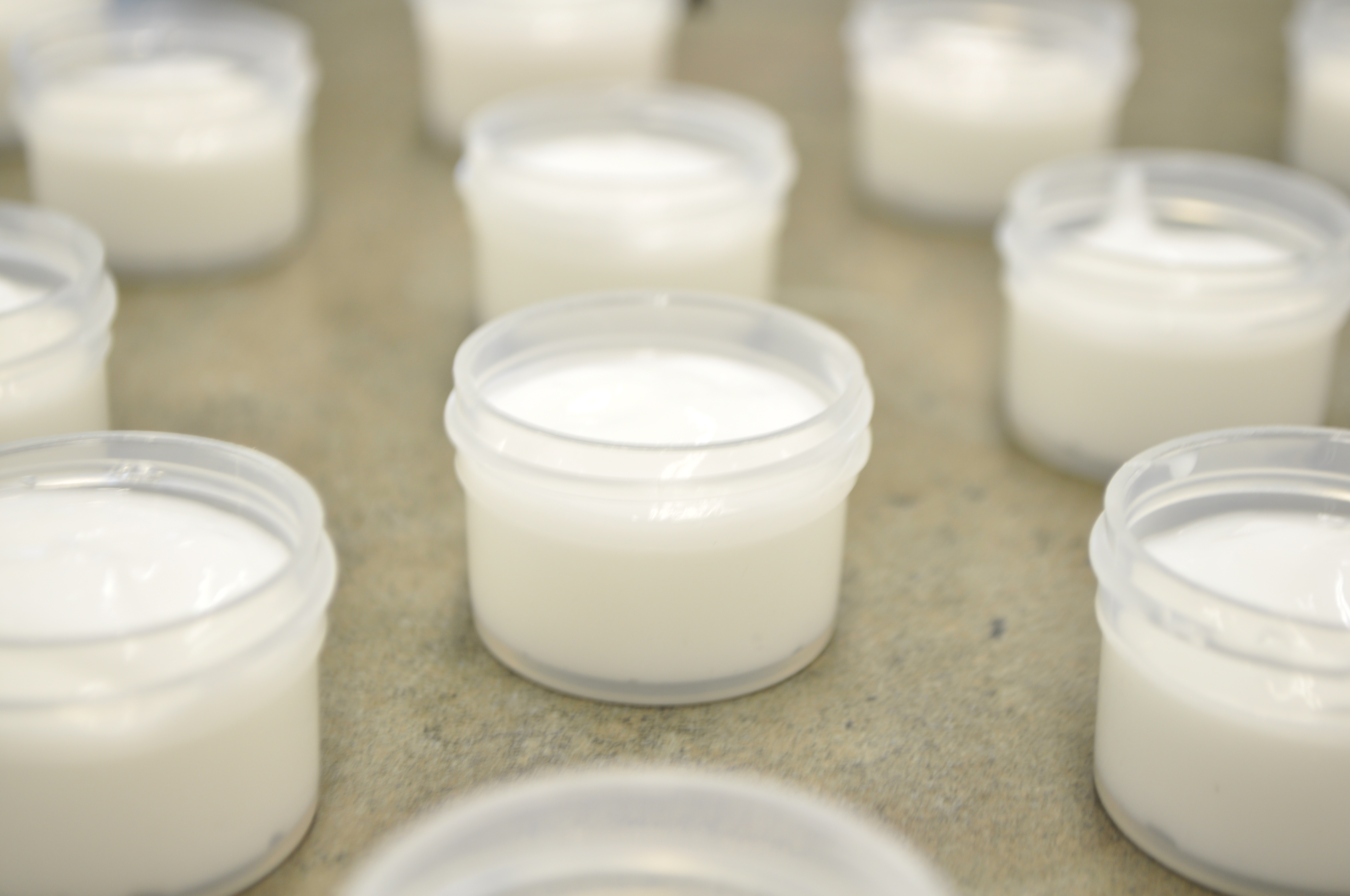 Weigh everything except the Peppermint Essential Oil and Liquid Germall Plus into a microwave safe container. Heat gently until everything is liquid. Using an immersion blender, blend the mixture. Allow the cream to cool. If the cream starts to get spots of oil on top, it needs a little more time mixing. Just use your immersion blender to mix for a little longer.