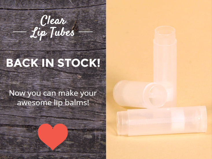 I am so excited and relieved to finally tell you that the Clear Lip Balm Tubes are back in stock! You’ve been asking just as hard as we have about these tubes and we finally have these fabulous tubes into our warehouse!