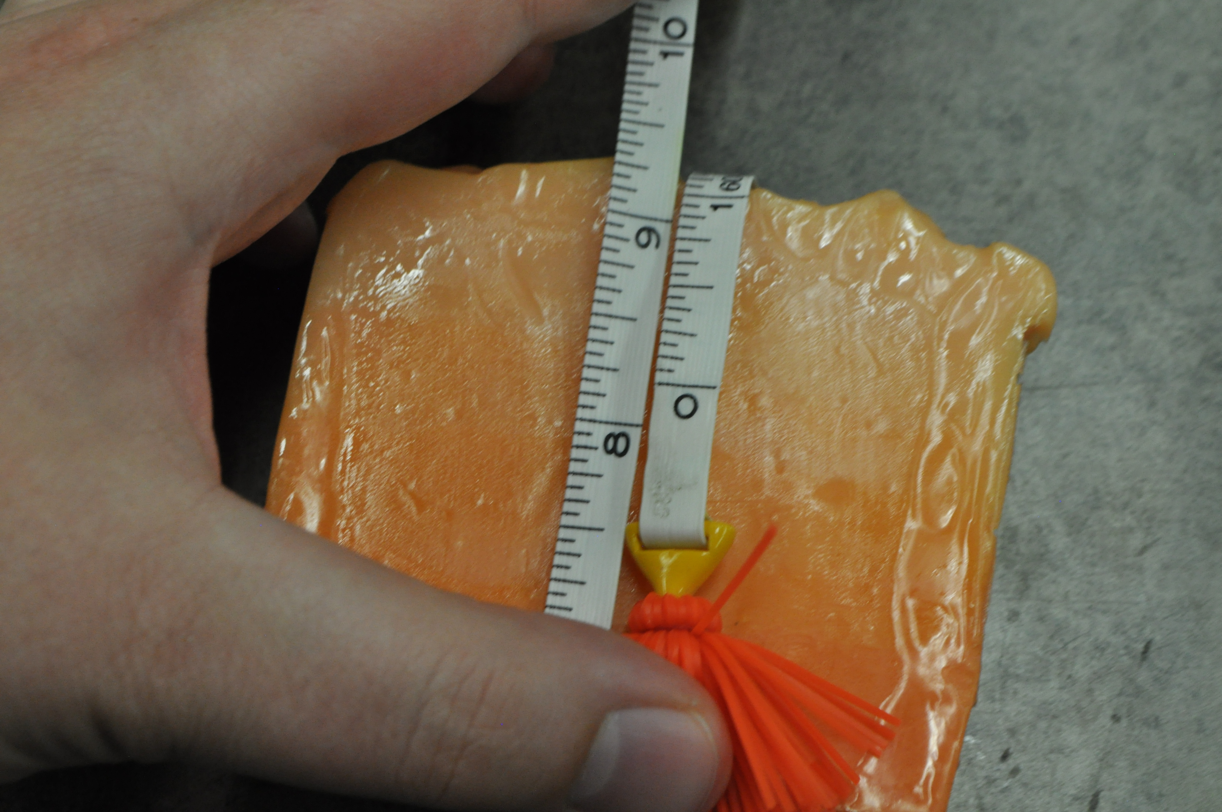 To start, you will need a bar of soap and a tape measure. (We recommend that you choose one of the larger bars that you have.) We will need three measurements. The width, the height and the circumference. Once we have those measurements, we can start choosing the right shrink band!