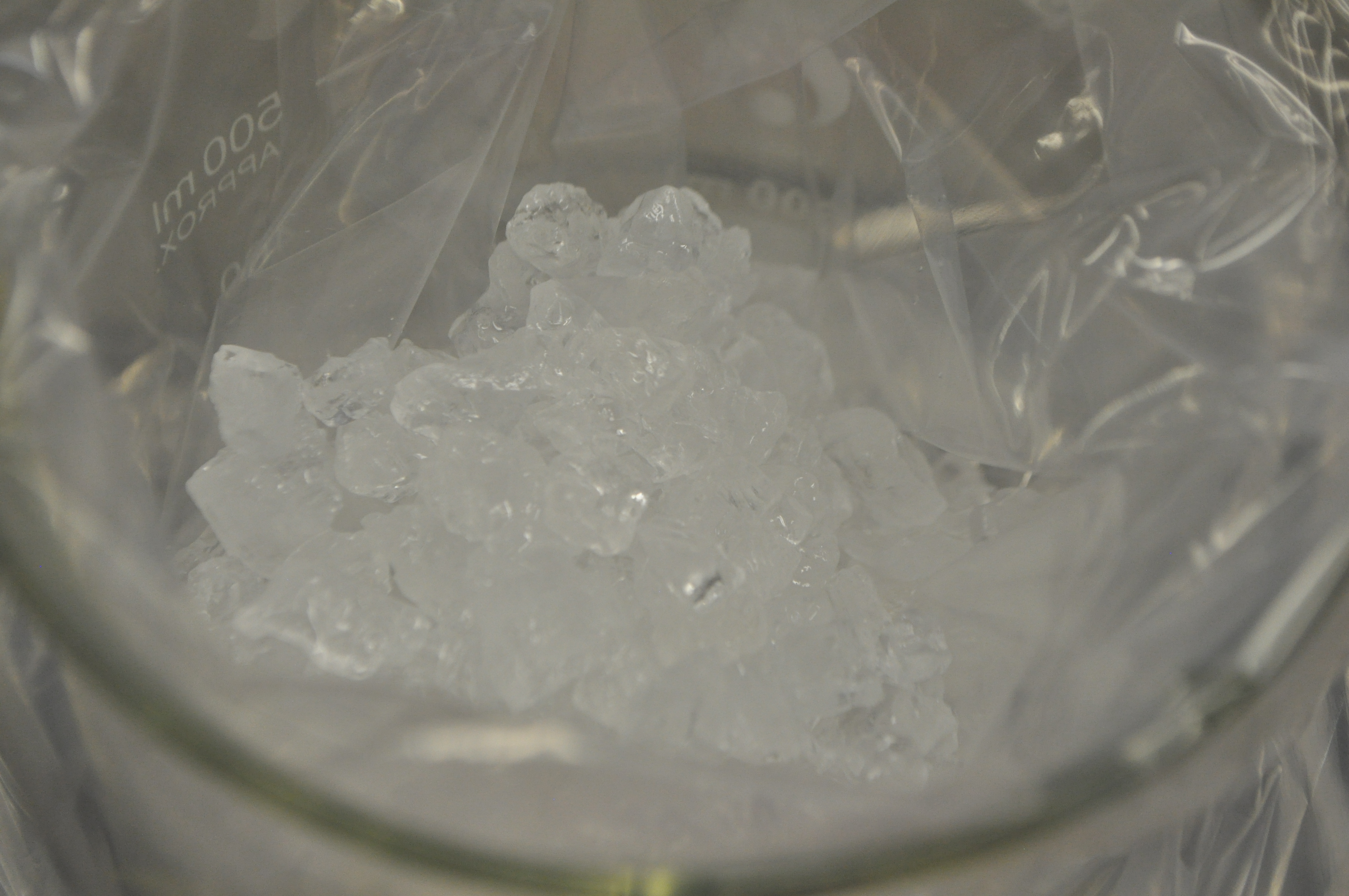 Measure out your salt into a colander. By rinsing off the dust, you get clear, glass looking pieces of salt. I like the appearance of washed salt vs. unwashed salt. If you like the appearance of the unwashed salt, go ahead and skip this step.