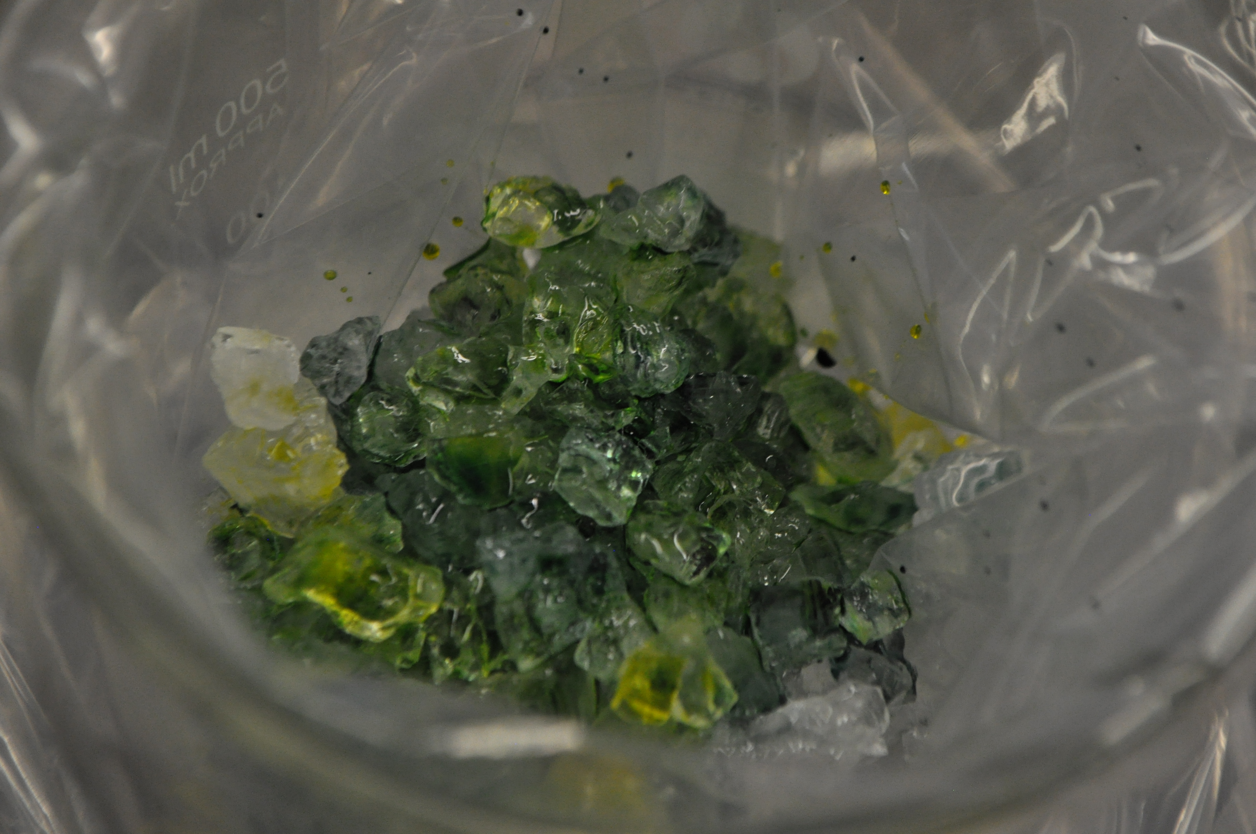 With the other half of the washed salt, add the premixed GrapeColor and Lemon Yellow Color to the salt. Once you have achieved the color you desire, shake well.