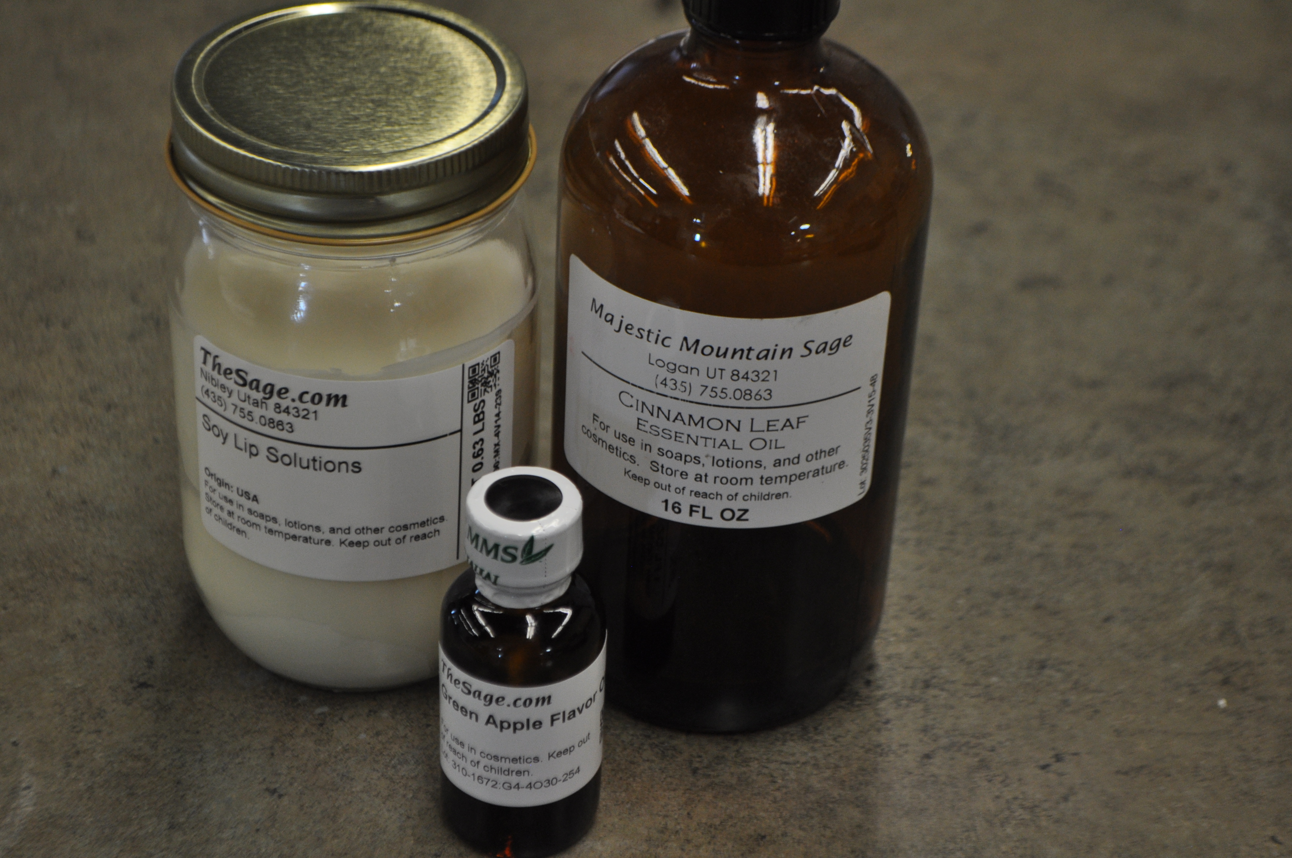 Recipe in Ounces 0.63 lbs Soy Lip Solutions 0.2 oz Green Apple Flavor Oil 0.02 oz Cinnamon Leaf Essential Oil |
