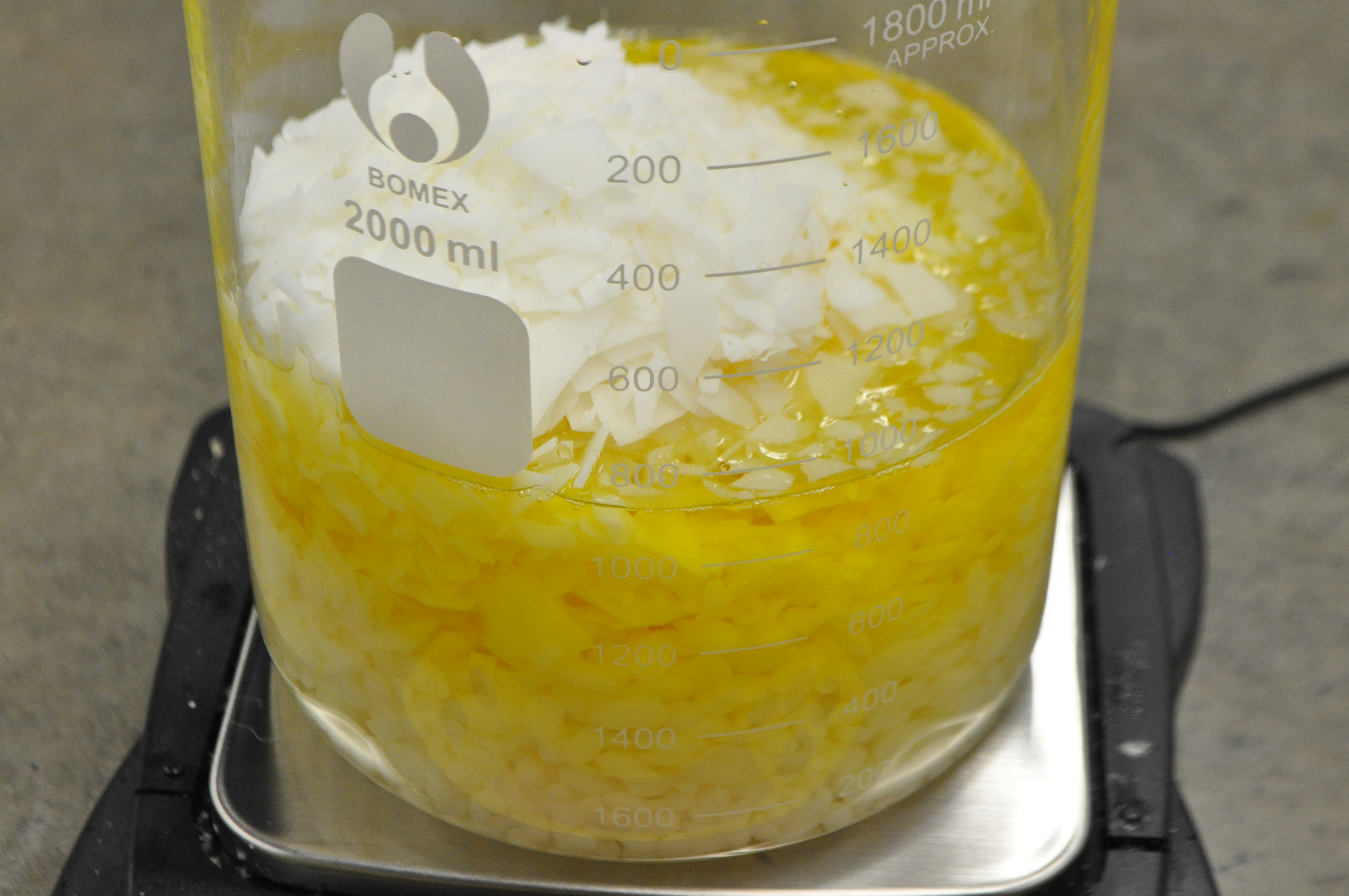 | Recipe in Grams 230 grams Castor Oil 230 grams Golden Jojoba Oil 57.5 grams Conditioning Emulsifier 172.5 grams Beeswax 172.5 grams Palm Kernel Oil 287.5 grams Virgin Coconut Oil |