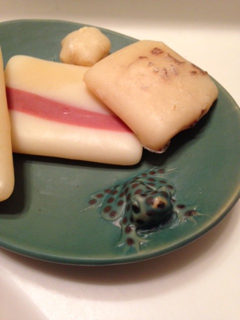 LOL I have to laugh because Lauri’s cool soap dish has 4 pieces of soap in it! Just like every soap dish in my baths, showers and sinks. All have at least 4 soaps and the kitchen sink has about 8 little balls made from leftovers from various batches. Thanks for sharing, Lauri!