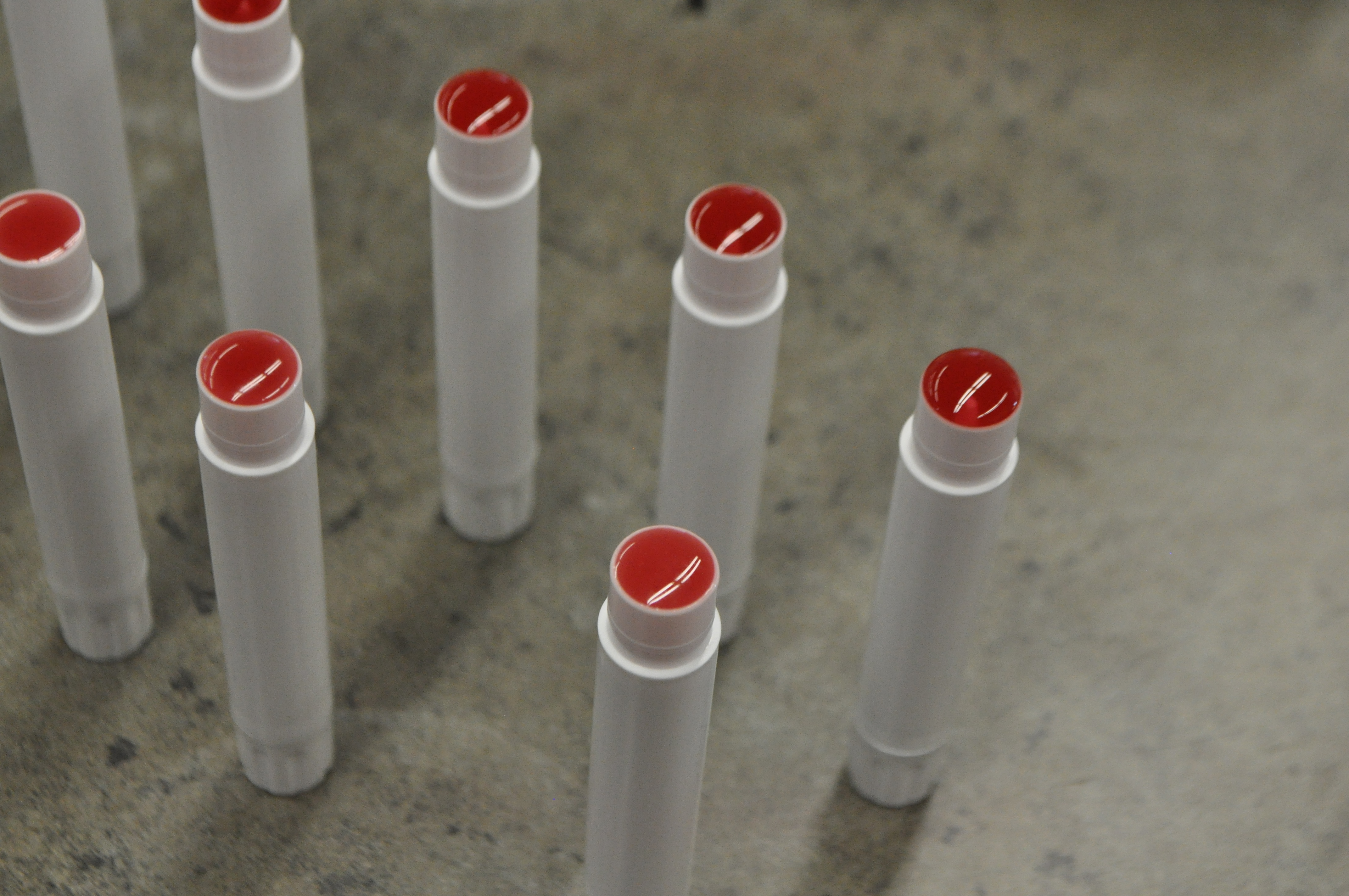| Ingredients Candelilla Wax Carnauba Wax Mango Butter Deodorized Cocoa Butter Castor Oil Shea Oil, Semi Solid Macadamia Nut Oil Vitamin E Acetate Blackberry Pomegranate Flavor Oil Ruby Lip Balm Color |