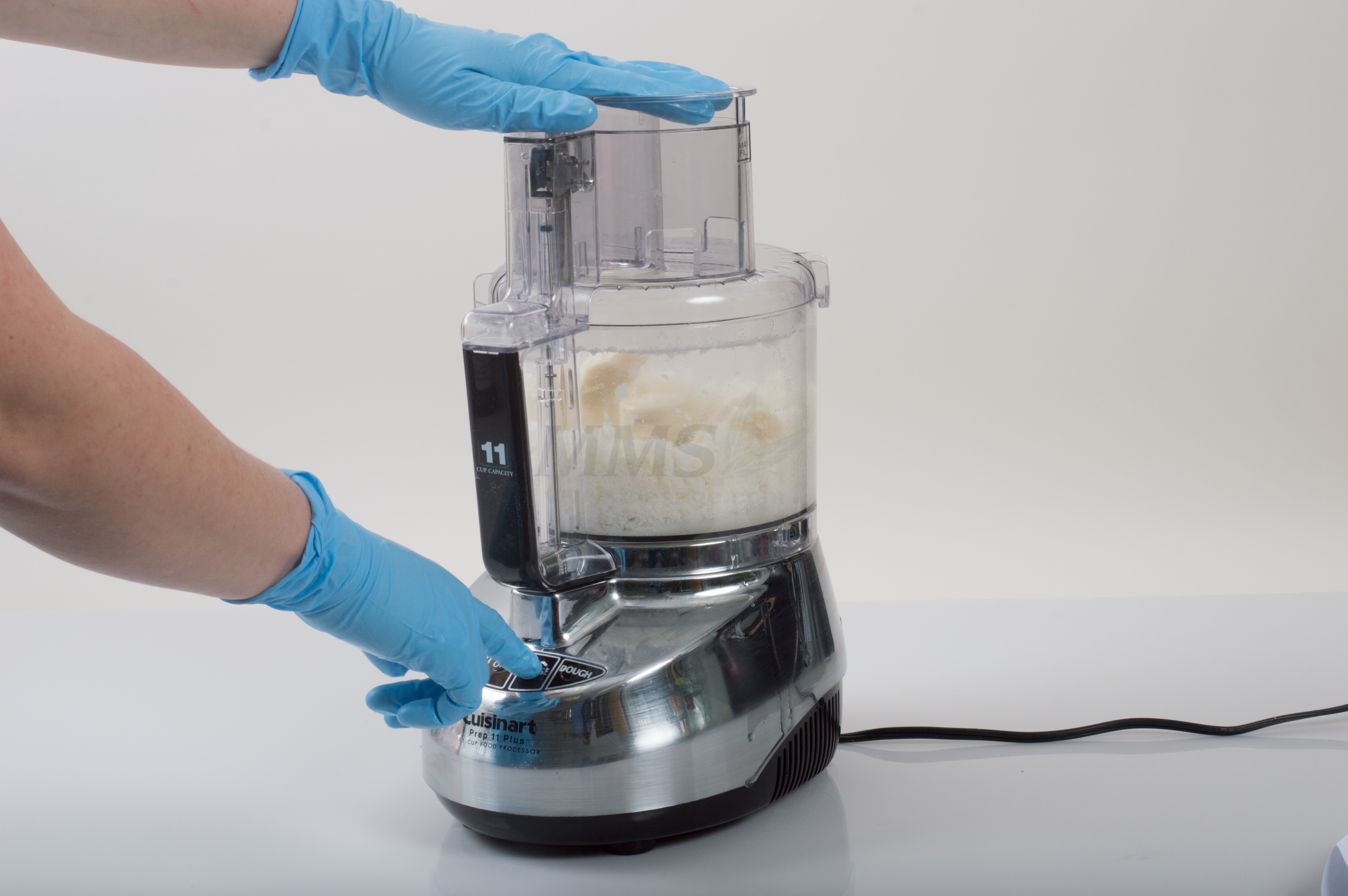 In order to make this lip scrub, you are going to need to melt the Beeswax Beads. So my first step was weighing everything except for the Apricot Kernel Oil and the Beeswax Beads into the food processor. In a separate beaker, I weighed out the Apricot Kernel Oil and Beeswax and then microwaved it for about a minute until the Beeswax was mostly melted. Then I added that to the food processor and pulsed until everything was mixed together.
