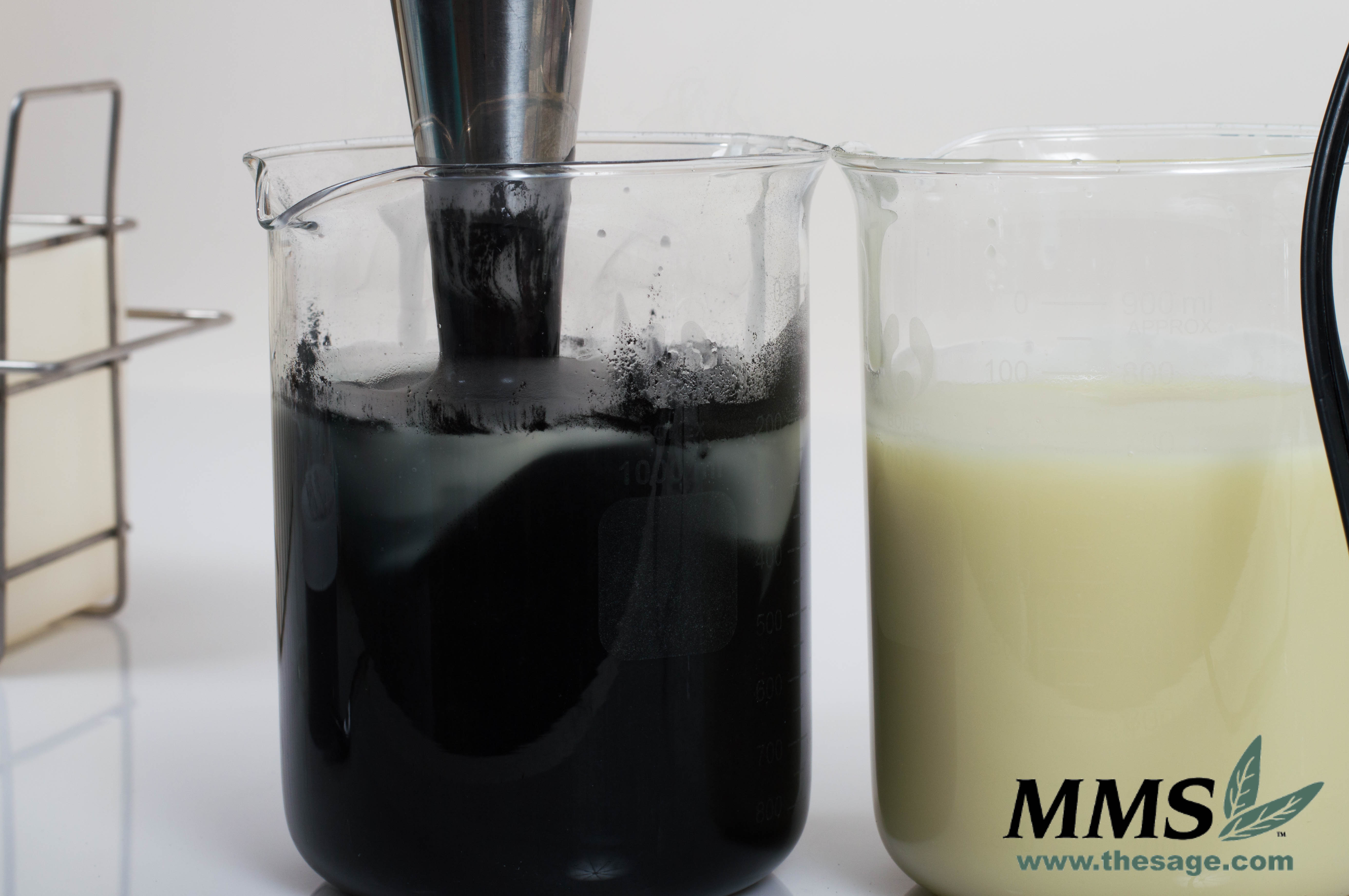 Start by weighing all of your oils into two separate batches. Heat those oils gently until liquid. While the oils are heating in the microwave, weigh out your lye and mix with your water. This is also a good time to measure your Chinese Star Anise Essential Oil and Activated Charcoal. Remember to add your lye to your water, not the other way around. Your safety is our first concern! Allow the warmed oils and the lye solution to cool to a temperature range of 110°F-120°F.