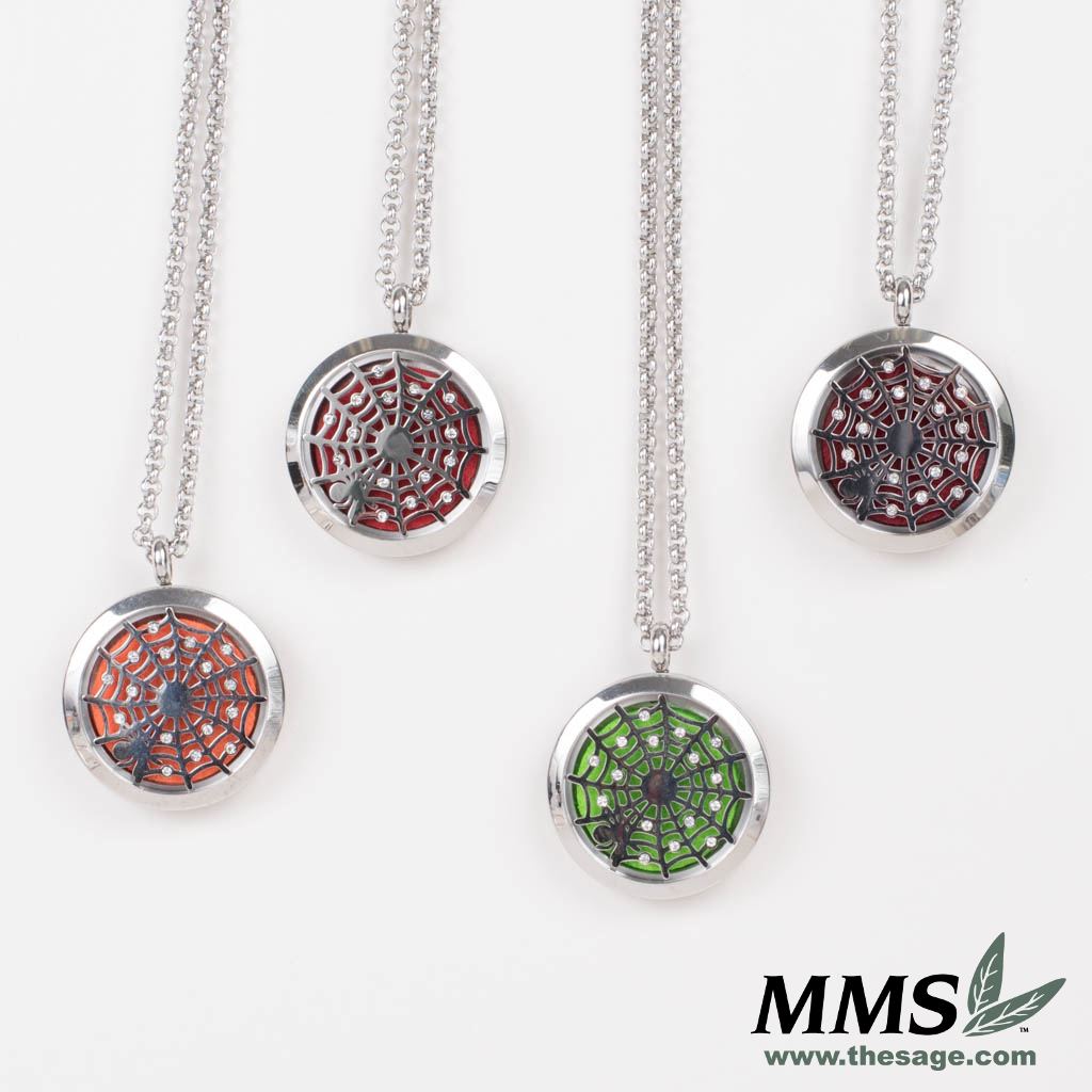 One more diffuser that we added is just in time for Halloween. This necklace diffuser is a spiderweb featuring a cute little spider. This one calls to lovers of our spookiest holiday with an adorable spider on a dew bejeweled web. I enjoy this necklace diffuser because it is elegant enough, it can be worn all year long. One of our customers has her birthday on Halloween and often asks her mother “Am I a trick or a treat?” I got a great laugh out of that. With this adorable necklace, we can ask ourselves that very same question. Today am I a trick or a treat? No matter how I was feeling, I know I would choose to scent this particular necklace diffuser with either our Wicked Fragrance or even perhaps our Exotic Potions. What a wicked decision I must make! Can you think of other fragrances that would be a good choice? I love how these diffusers allow me to wear any fragrance I desire without worrying about how it will react with my body chemistry. This has opened up my stash of fragrances considerably! I will be able to wear some of my favorite scents without fear that it will end up smelling off-putting at the end of the day. Wahoo!