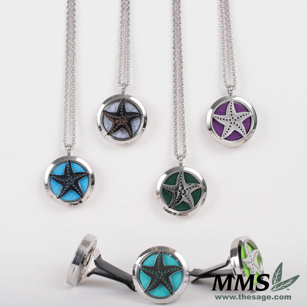 Have you seen our newest aromatherapy diffusers?! I am so thrilled and I want to start skipping with excitement! I am in love! Our newest addition to the aromatherapy diffuser family is an adorable starfish! You can choose either a necklace or an auto diffuser that clips onto the air vents in your vehicle. It makes me think of the interactive aquariums that I have been to where guests can gently pet the starfish and other marine life. Those types of aquariums are so much fun and are incredibly memorable! I think I would scent this particular diffuser with any of our ocean inspired fragrances. Should I choose Lighthouse, Sea Salt, Ocean Rain or Mediterranean Silk? What fragrance do you recommend I try first? I don’t know that I can make a decision without your help! Who knew a seemingly easy decision could be so difficult?!