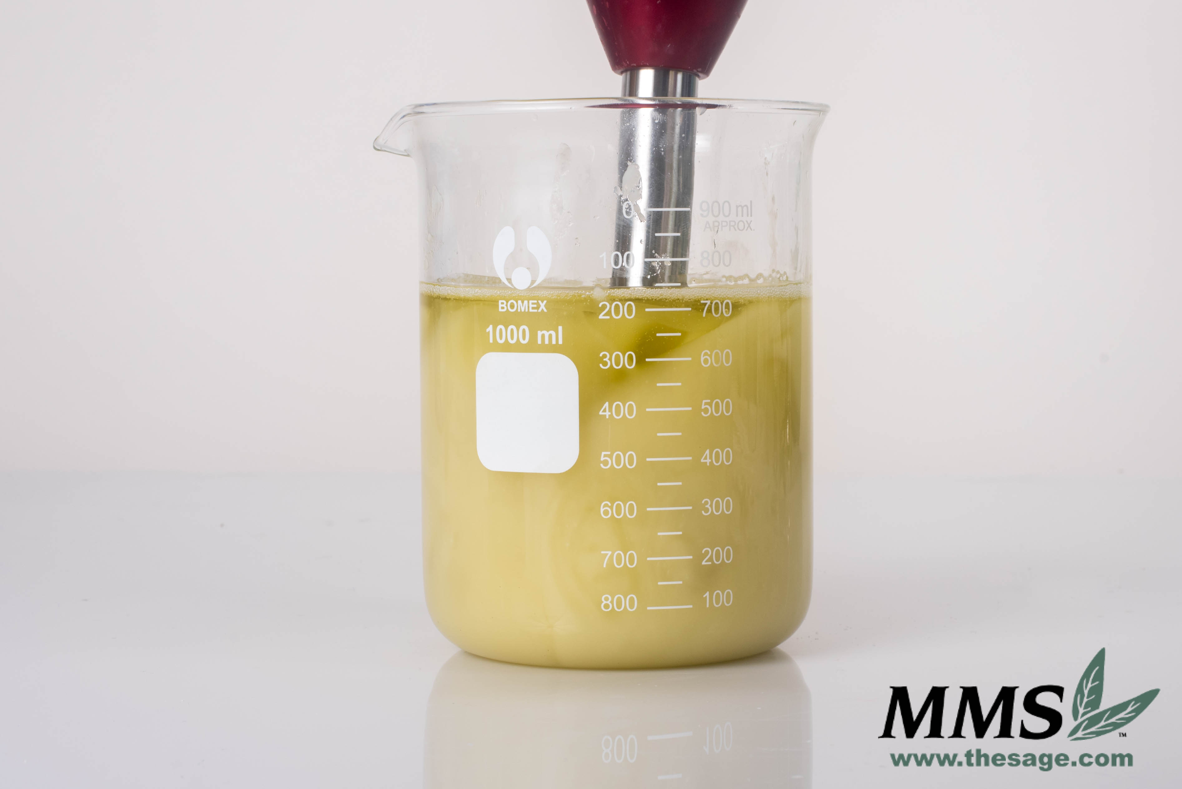 To make this soap I weighed out all of my ingredients into a beaker then microwaved it, stirring occasionally. Once the oils were fully melted, I set them aside and allowed them to cool. While my oils were in the microwave, I mixed the Sodium Hydroxide and water together for my lye solution.