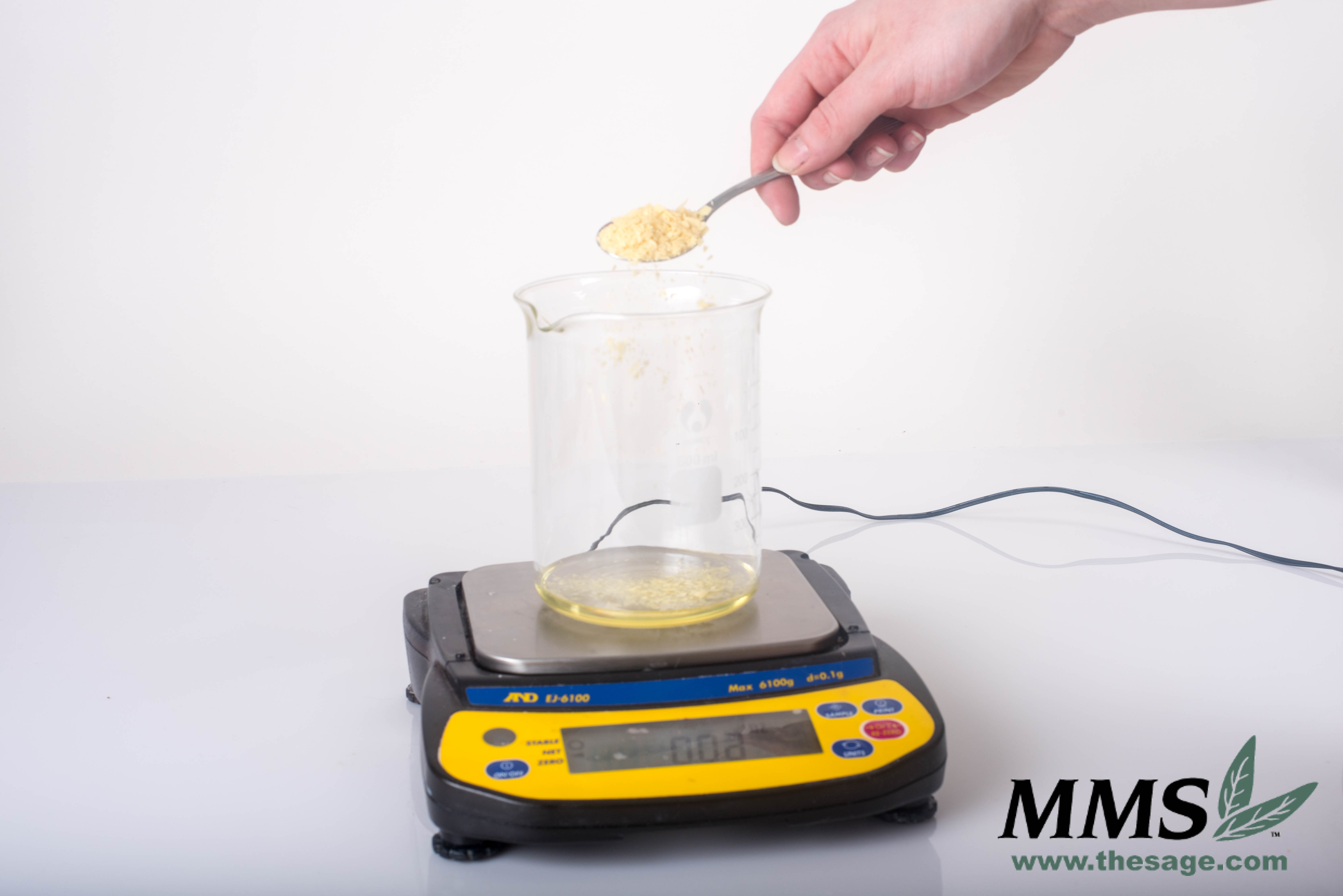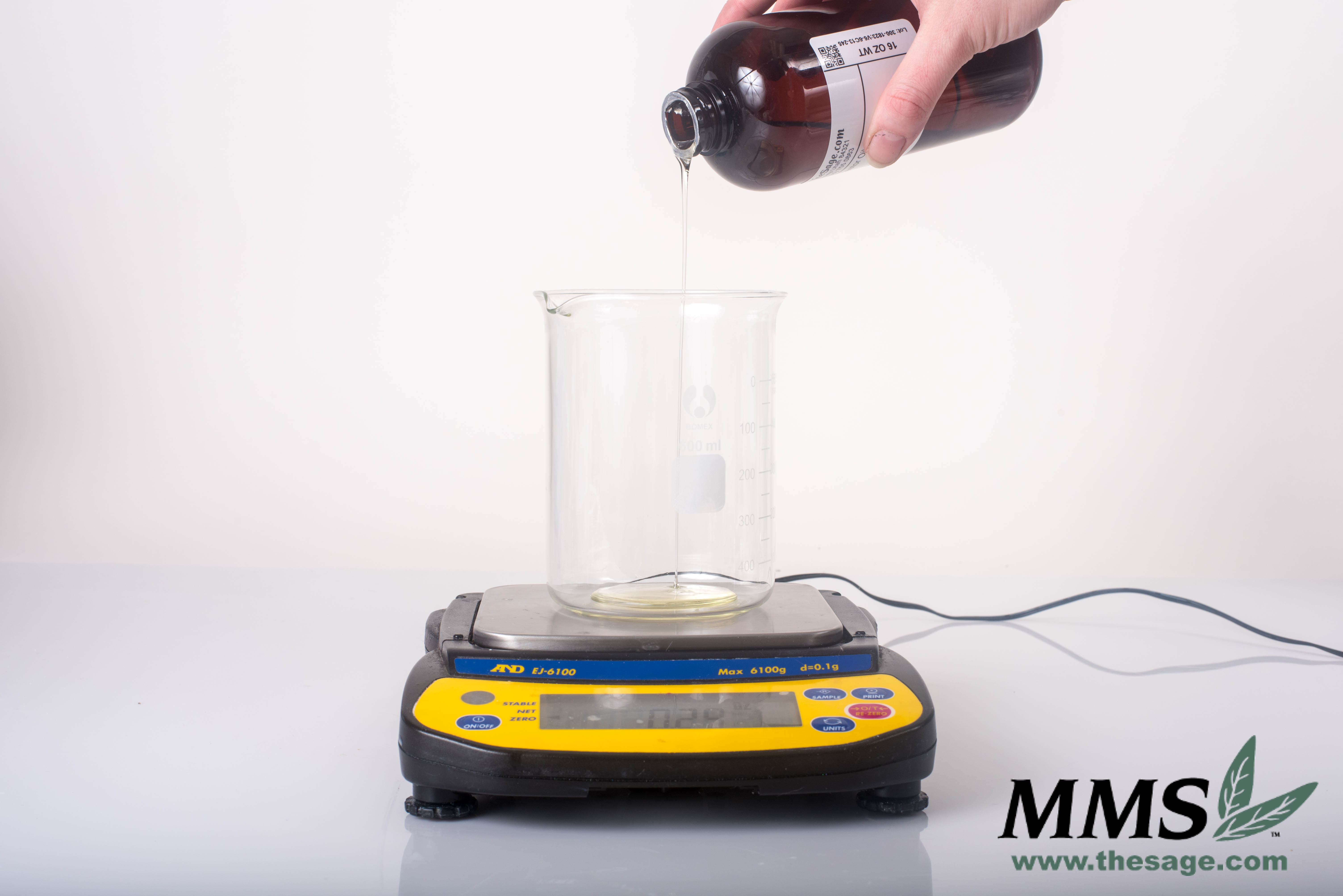 The first step in making this lip gloss is to weigh out the Castor Oil and Carnauba Wax into a microwave-safe container. Now you can heat in the microwave for short bursts of time until the wax is melted. Once the wax is melted, you get to add the fun stuff like flavor and colors!