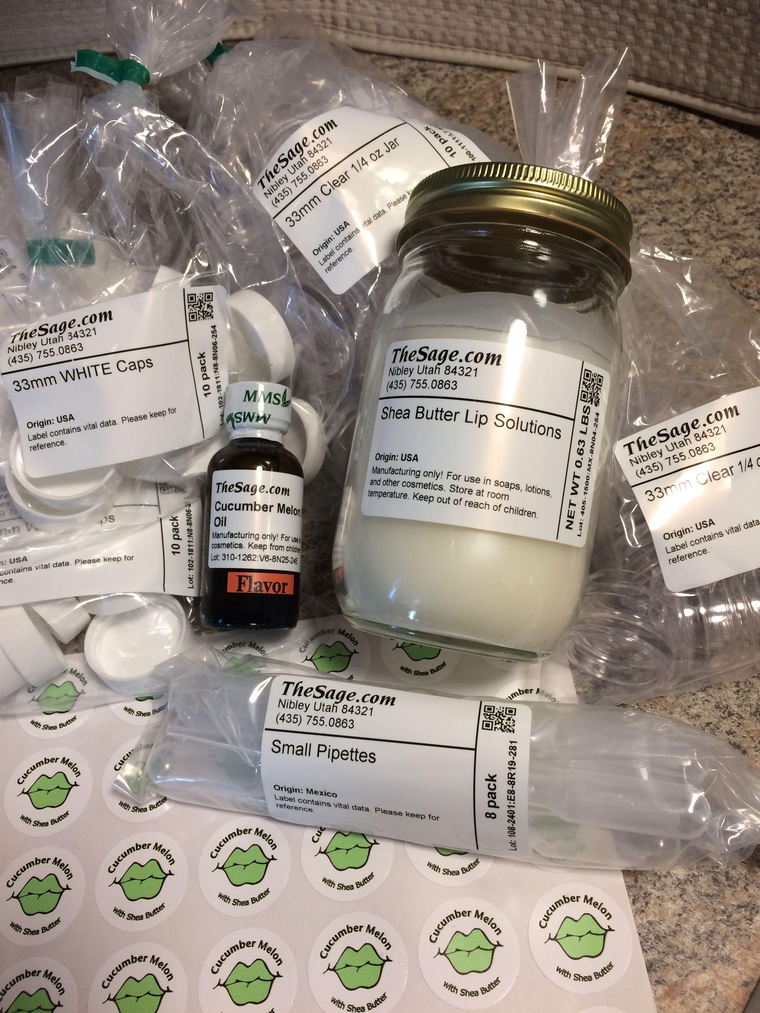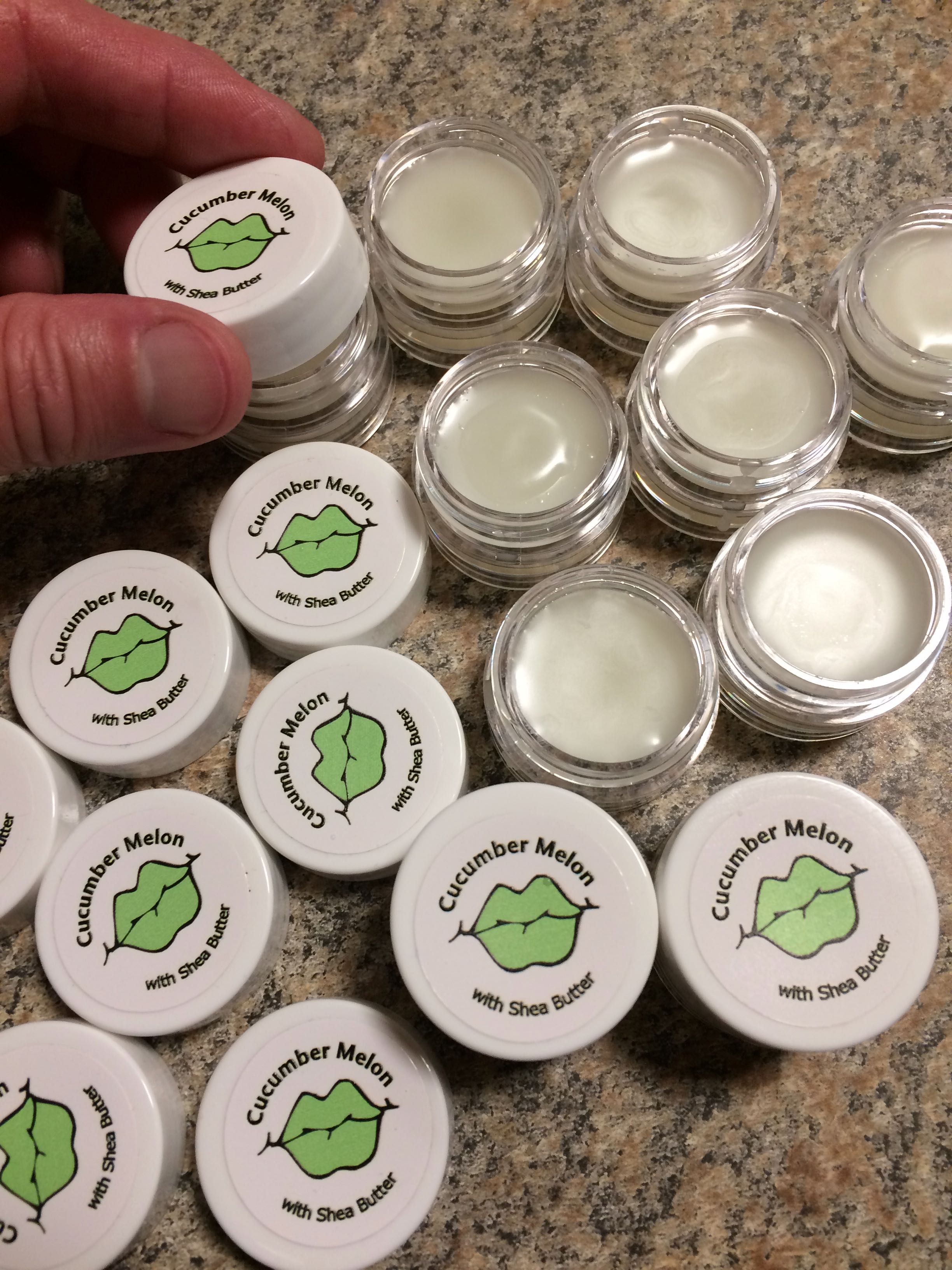 Today I gave the Shea Lip Solutions Gift Kit a try. It took me less than 30 minutes to make 10 jars of Cucumber Melon Lip Balm. It would not have taken much longer to fill all 30 jars included with the kit. Aren’t these labels cute as can be?!