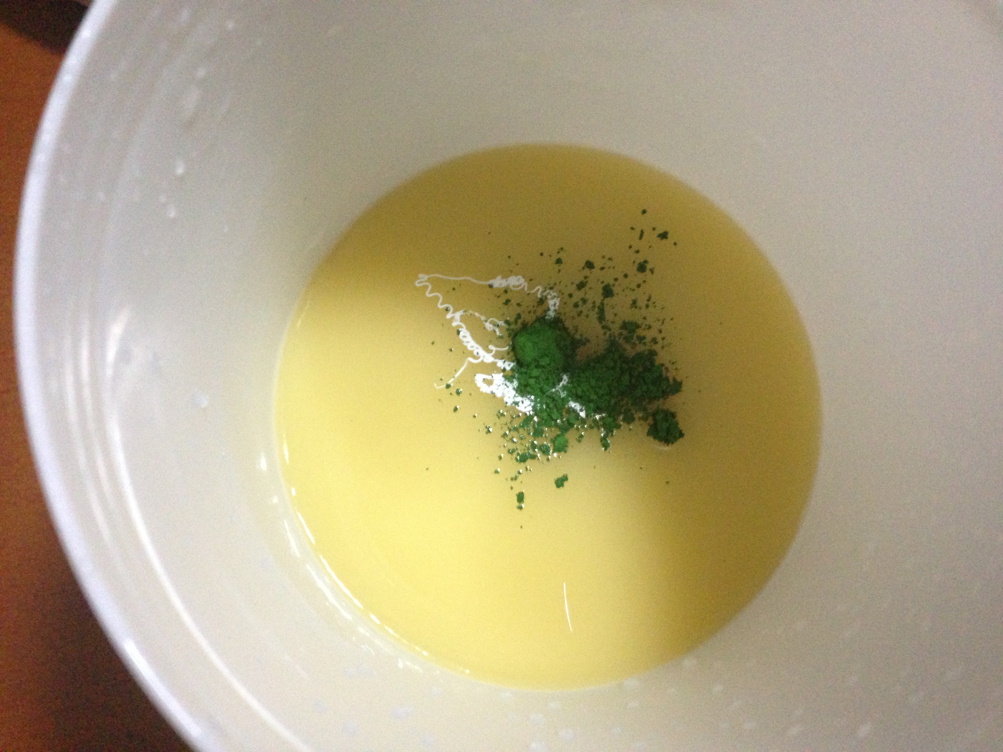 Raw soap at light trace with white color and Moss Green added.