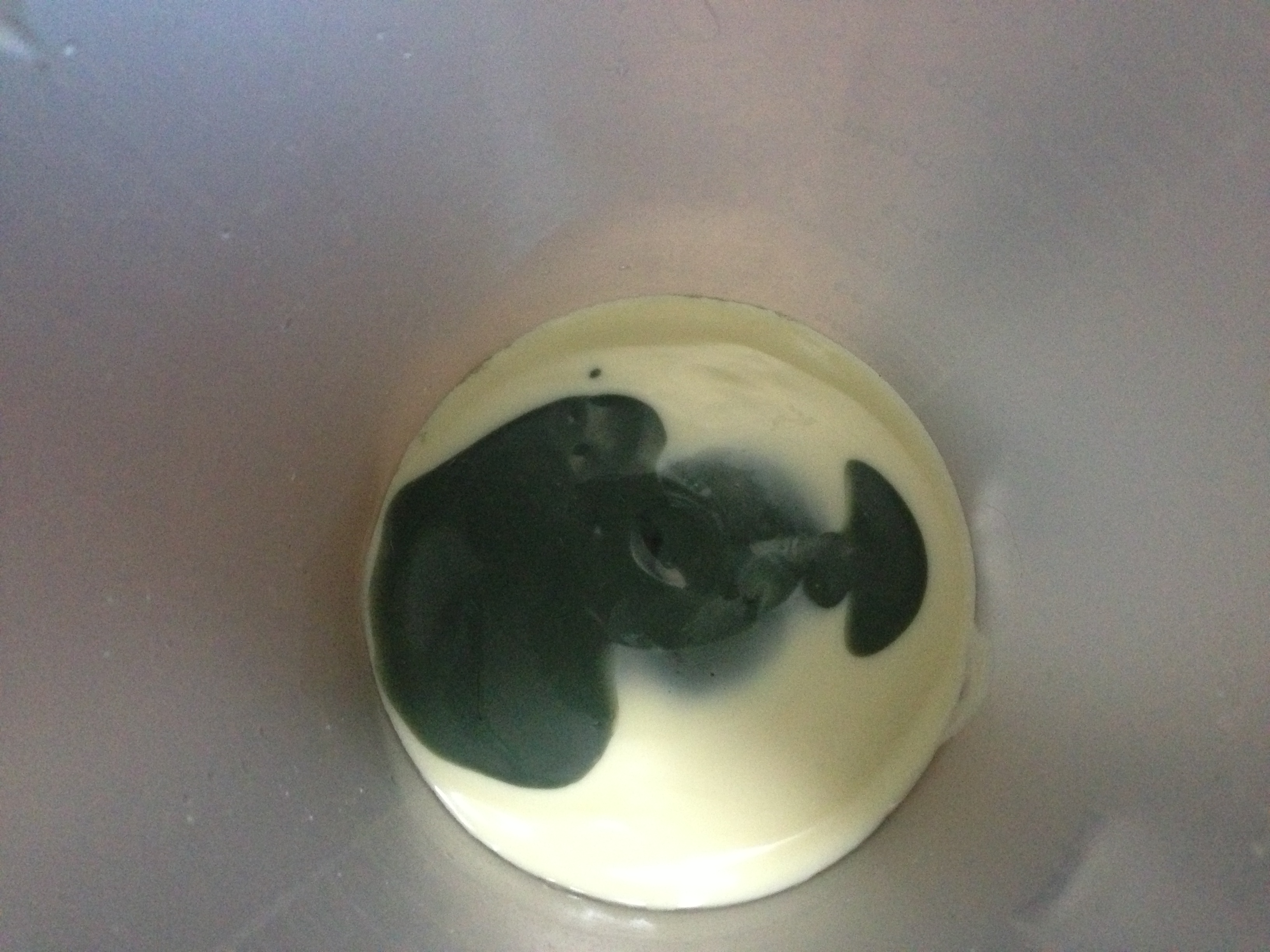 Layering the dark green and white soap.